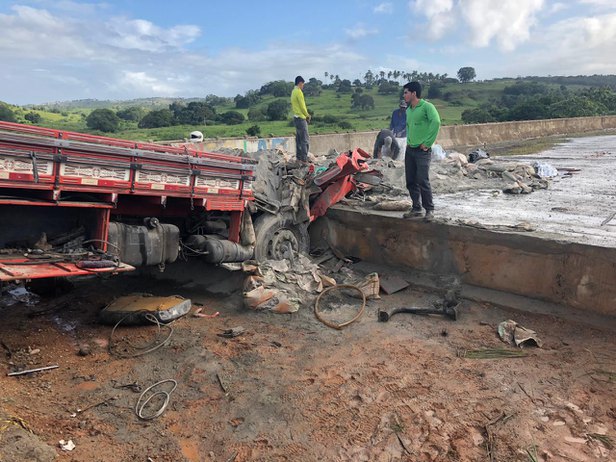 Duas pessoas morrem ao colidir caminhão com ponte em construção na BR...